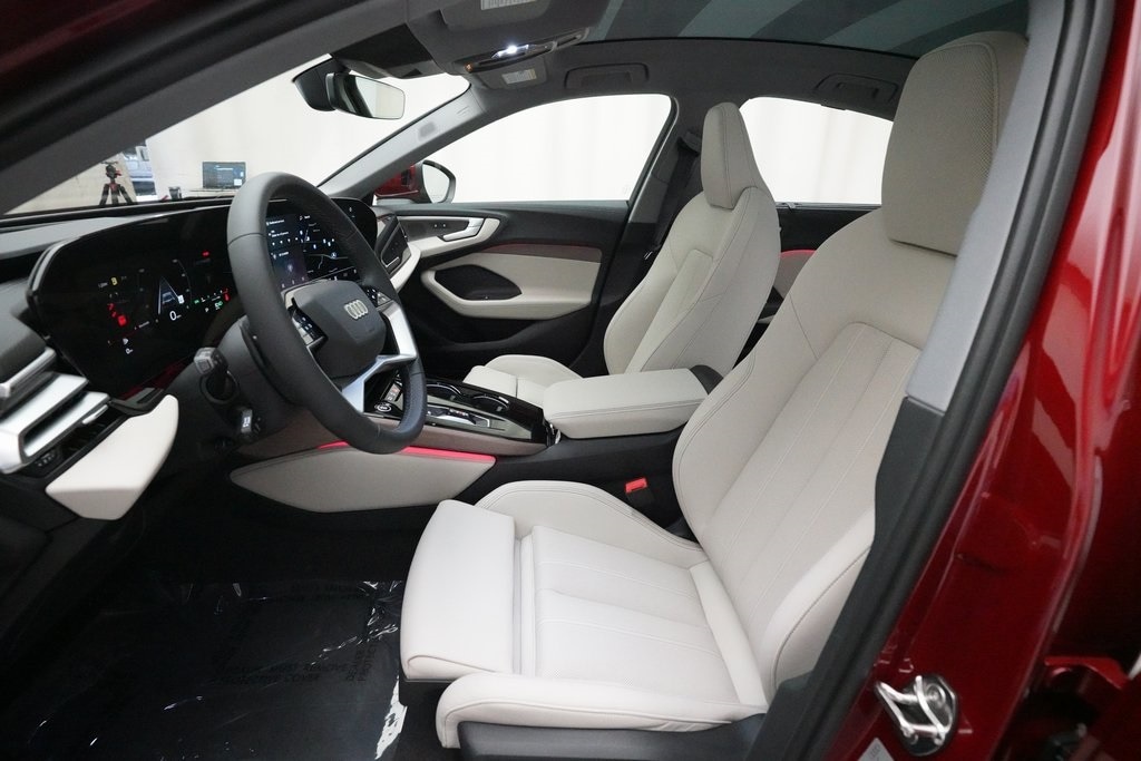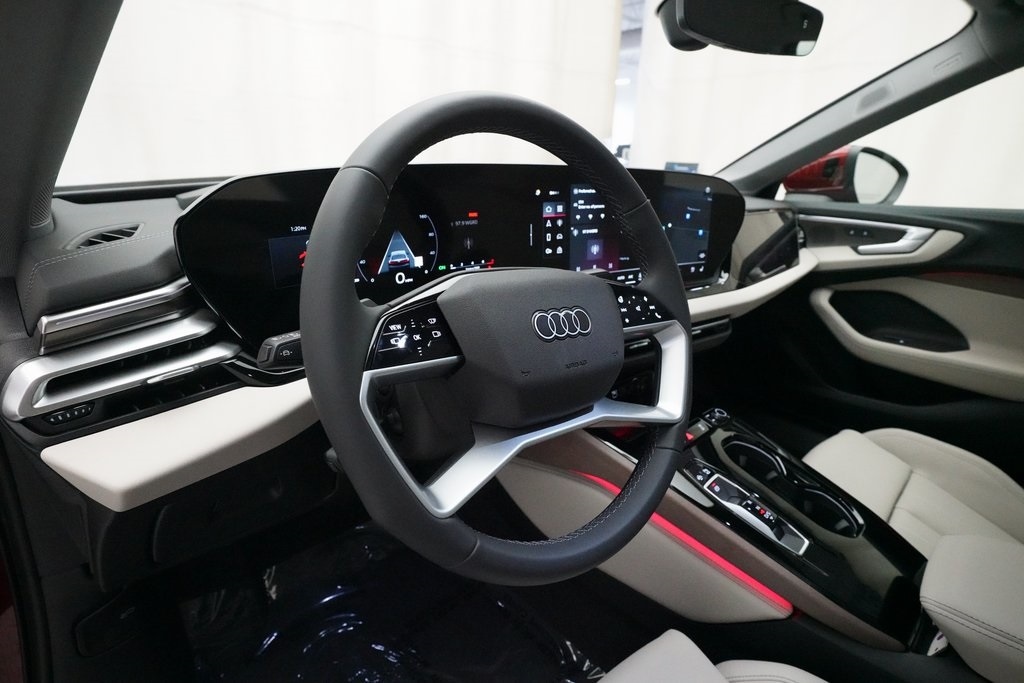 2025 Audi A5 Quattro finished in Grenadine Red Metallic over Pearl Beige Leather. This retired Mobility Unit comes with a clean Car Fax Report and is proudly offered for sale with an Audi-Approved Certified Pre-Owned Warranty.