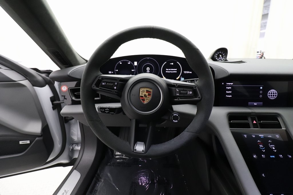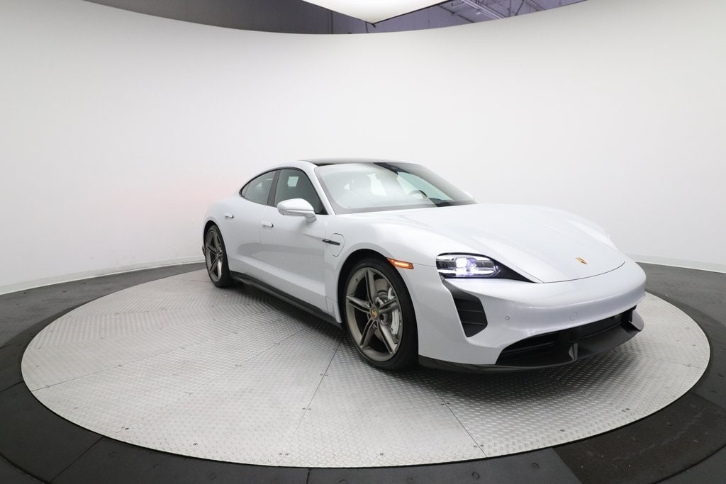 2024 Porsche Taycan 4S finished in Ice Grey Metallic over Black / Slate Gray Race Tex.