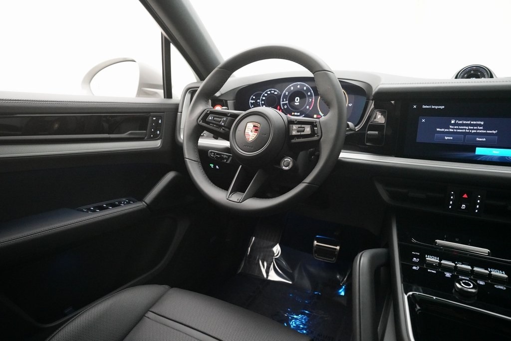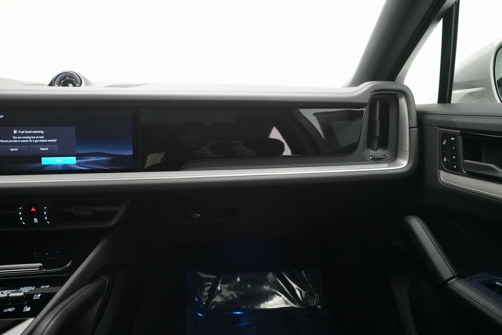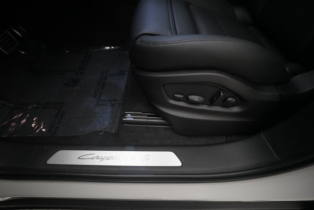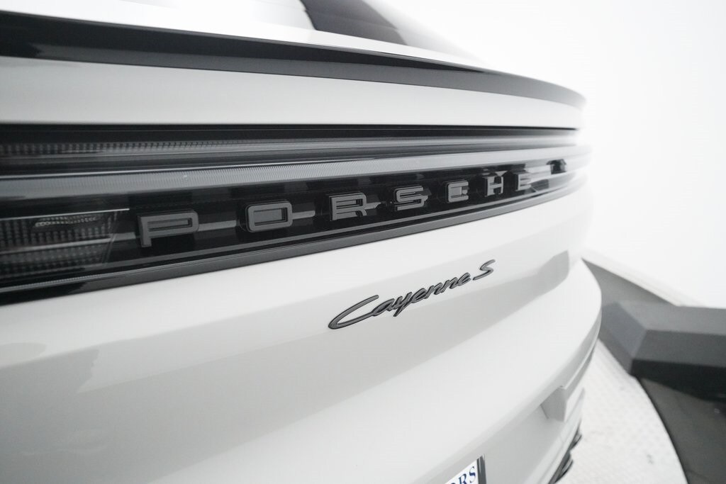 10 Speakers, 4-Wheel Disc Brakes, 8-Way Sport Seats, ABS brakes, Adaptive Suspension, Air Conditioning, Alloy wheels, AM/FM radio: SiriusXM w/360L, Apple CarPlay & Android Auto, Audio memory, Auto-dimming door mirrors, Auto-dimming Rear-View mirror, Automatic temperature control, Brake assist, Bumpers: body-color, Compass, Delay-off headlights, Driver door bin, Driver vanity mirror, Dual front impact airbags, Dual front side impact airbags, Dual-Climate Control, Electronic Stability Control, Four wheel independent suspension, Front anti-roll bar, Front Bucket Seats, Front Center Armrest, Front reading lights, Fully automatic headlights, Garage door transmitter: HomeLink, Heated Front Seats, Heated Sideview Mirrors, Heated Steering Wheel, HVAC memory, Illuminated entry, Knee airbag, Leather Seat Trim, Leather Steering Wheel, Low tire pressure warning, Memory seat, Navigation System, Occupant sensing airbag, Outside Temperature Display, Overhead airbag, Overhead console, Panic alarm, Passenger door bin, Passenger vanity mirror, Porsche Communication Management, Power Adjusting Driver Seat, Power door mirrors, Power Liftgate, Power passenger seat, Power steering, Power windows, Radio data system, Rain Sensing Wipers, Rear anti-roll bar, Rear fog lights, Rear reading lights, Rear seat center armrest, Rear side impact airbag, Rear Spoiler, Rear-View Camera, Rear/Front Window Defroster, Remote Keyless Entry, Security System, Speed Control, Speed-sensing steering, Split Folding Rear Seat, Steering Wheel Mounted Audio Controls, Tachometer, Telescoping steering wheel, Tilt steering wheel, Traction Control, Trip computer, Turn signal indicator mirrors, Variably intermittent wipers, Voltmeter, Wheels: 20" Cayenne S in Vesuvius Grey.