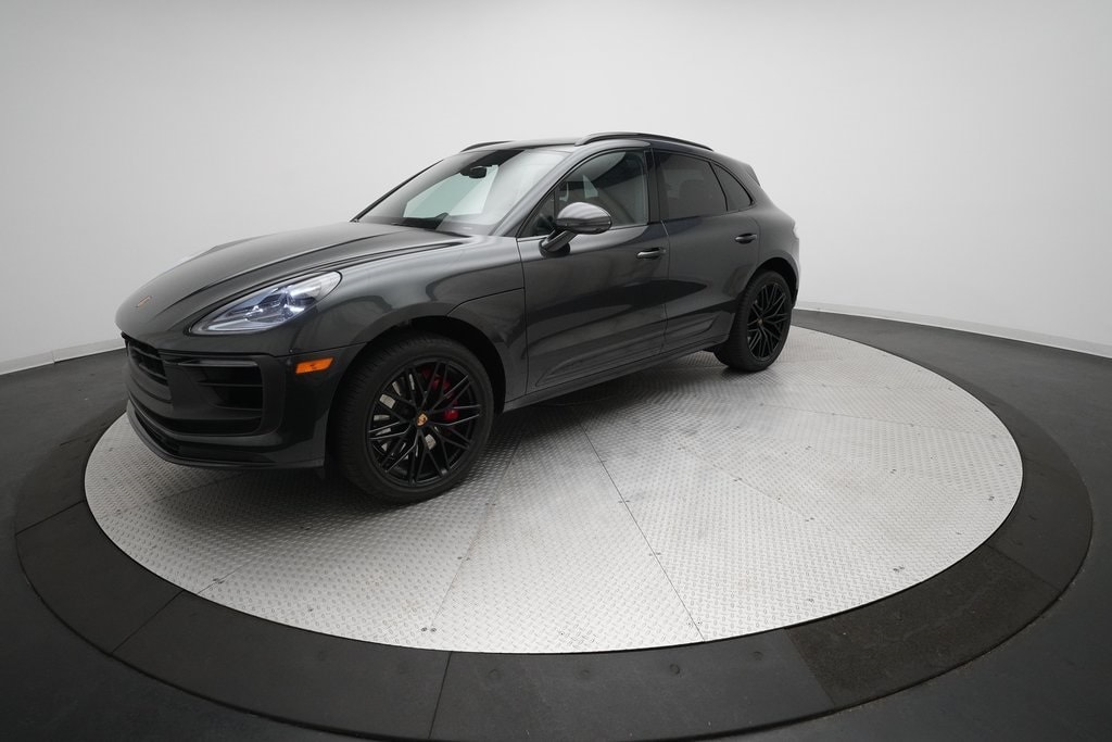 2026 Porsche Macan GTS finished in Volcano Grey Metallic over Black Leather.