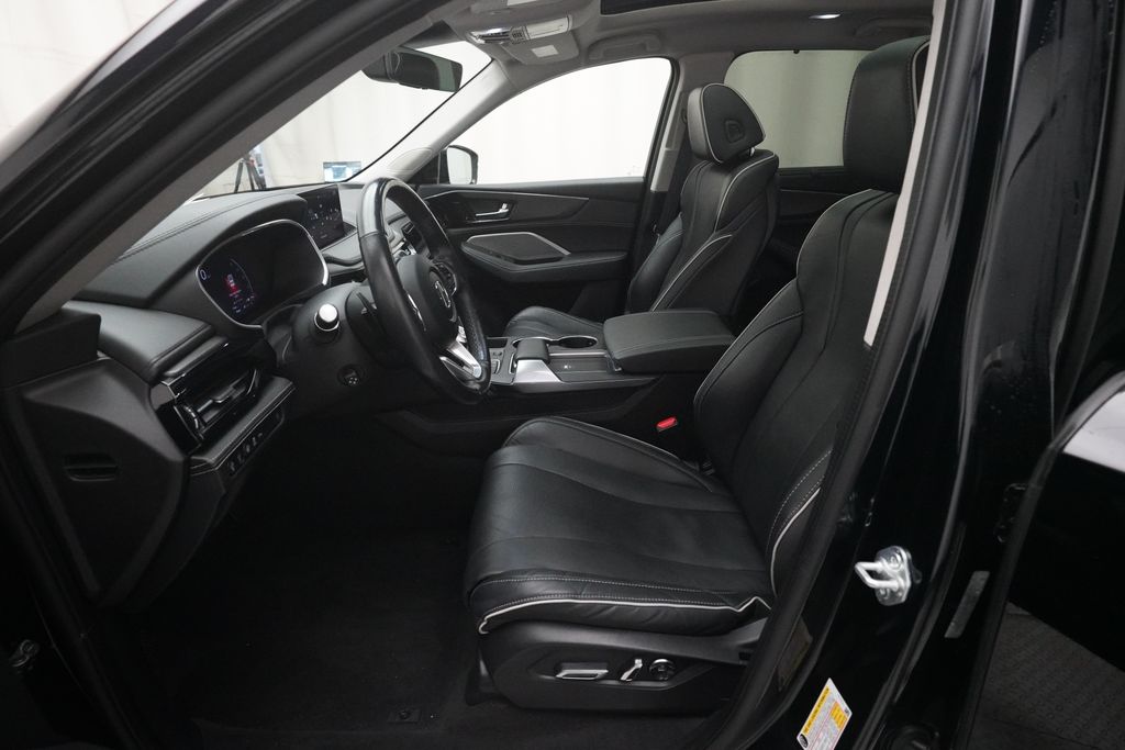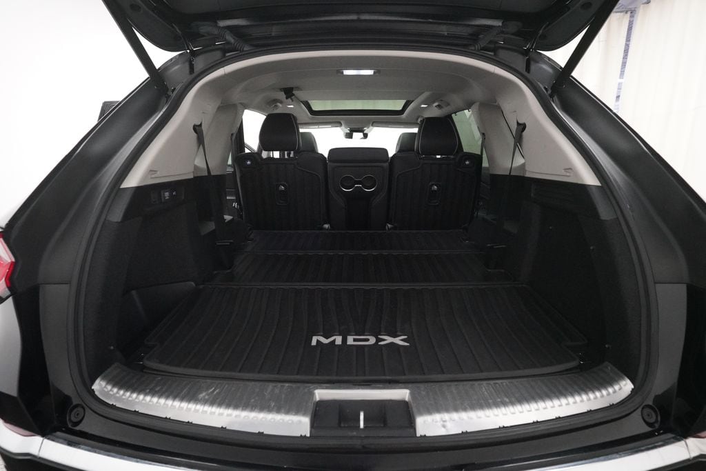 Ebony w/Perforated Milano Leather & Ultrasuede, 16 Speakers, 3rd Row Seats, 4-Wheel Disc Brakes, 4.17 Axle Ratio, A/V remote: CabinControl, ABS brakes, Adaptive Suspension, Air Conditioning, Alloy wheels, AM/FM Radio, Available Sirius XM Radio, Anti-whiplash front head restraints, Apple CarPlay/Android Auto, Audio memory, Auto High-beam Headlights, Auto tilt-away steering wheel, Auto-dimming Rear-View mirror, Automatic temperature control, Brake assist, Bumpers: body-color, Compass, Delay-off headlights, Driver door bin, Driver vanity mirror, Dual front impact airbags, Dual front side impact airbags, Dual-Climate Control, Electronic Stability Control, Emergency communication system: AcuraLink, Four wheel independent suspension, Front anti-roll bar, Front Bucket Seats, Front Center Armrest, Front Fog Lights, Front reading lights, Fully automatic headlights, Garage door transmitter: HomeLink, Heads-Up Display, Heated & Ventilated Front Sport Seats, Heated Front Seats, Heated Rear Seats, Heated Sideview Mirrors, Heated Steering Wheel, HVAC memory, Illuminated entry, Knee airbag, Lane departure: Lane Keeping Assist System (LKAS) active, Leather Steering Wheel, Low tire pressure warning, Memory seat, Navigation system: Acura Navigation System with 3D View, Occupant sensing airbag, Outside Temperature Display, Overhead airbag, Overhead console, Panic alarm, Passenger door bin, Passenger vanity mirror, Perforated Premium Milano Leather Trimmed Seats, Power Adjusting Driver Seat, Power door mirrors, Power Liftgate, Power Moonroof, Power passenger seat, Power steering, Power windows, Premium audio system: Acura/ELS Studio 3D, Radio data system, Radio: ELS Studio 3D Premium Audio System, Rain Sensing Wipers, Rear air conditioning, Rear anti-roll bar, Rear reading lights, Rear seat center armrest, Rear Spoiler, Rear Window Wiper, Rear/Front Window Defroster, Remote Keyless Entry, Roof rack: rails only, Security System, Speed Control, Speed-sensing steering, Speed-Sensitive Wipers, Split Folding Rear Seat, Steering wheel memory, Steering Wheel Mounted Audio Controls, Tachometer, Telescoping steering wheel, Tilt steering wheel, Traction Control, Trip computer, Turn signal indicator mirrors, Variably intermittent wipers, Ventilated Front Seats, Wheels: 20" x 9" Aluminum Alloy, Ebony w/Perforated Milano Leather & Ultrasuede.