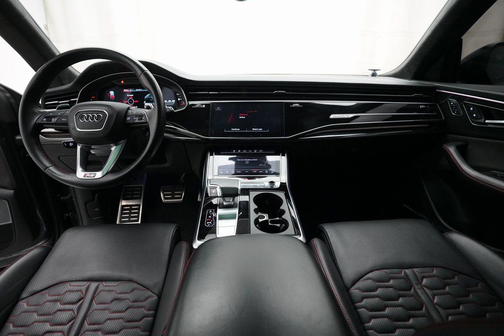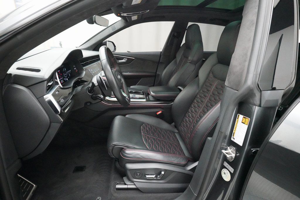 2021 Audi RS Q8 finished in Daytona Gray Pearl Effect over Black Leather with Red Stitching. This 2-owner RSQ8 comes with a clean Car Fax Report and has undergone a comprehensive, multi-point mechanical inspection prior to being offered for sale.