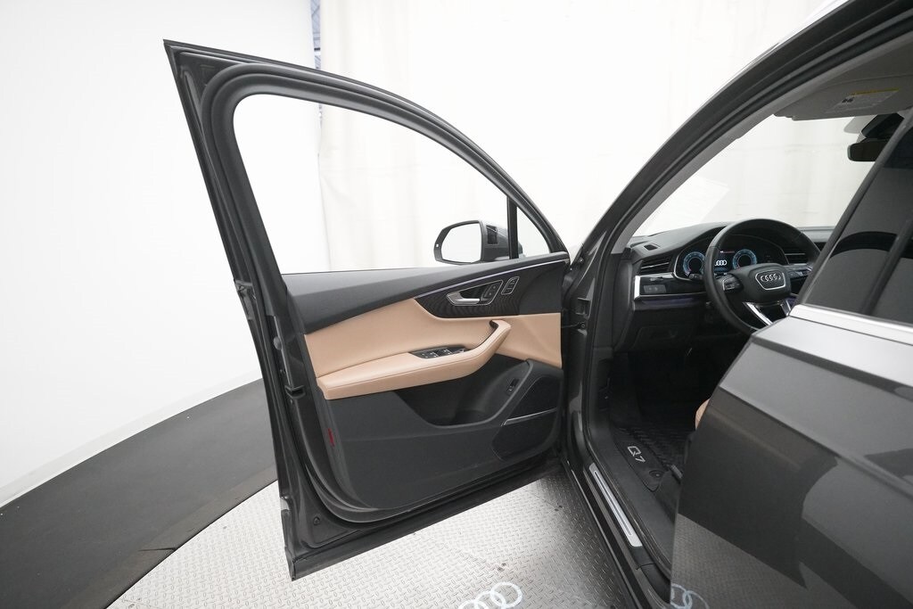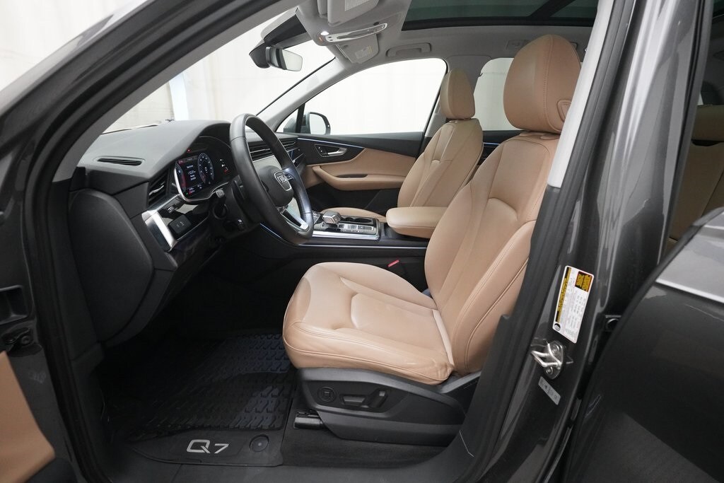 2022 Audi Q7 55 TFSI Quattro finished in Samurai Gray Metallic over Saiga Beige Leather. This one-owner Q7 comes with a clean Car Fax Report and has undergone a complete mechanical and safety inspection prior to sale.