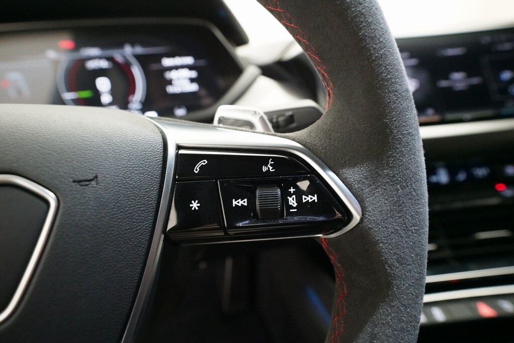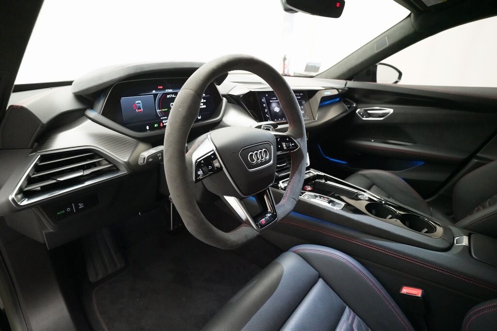 2022 Audi RS e-tron GT finished in Mythos Black Metallic over Black Leather with Red Stitching. This one-owner RS comes with a clean CarFax Report and is backed by the balance of Audi's 4-year / 50,000 mile New Vehicle Warranty.