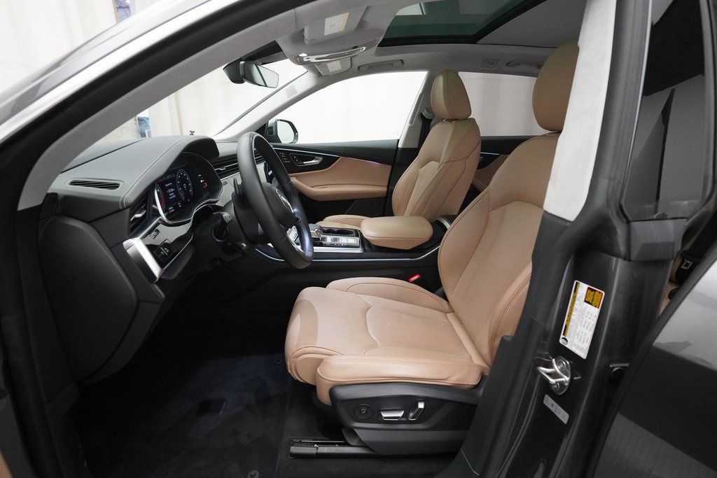 2023 Audi Q8 55 TFSI Quattro finished in Samurai Gray Metallic over Saiga Beige Leather. This one-owner Q8 comes with a clean Car Fax Report and is proudly offered for sale with an Audi-Approved Certified Pre-Owned Warranty.