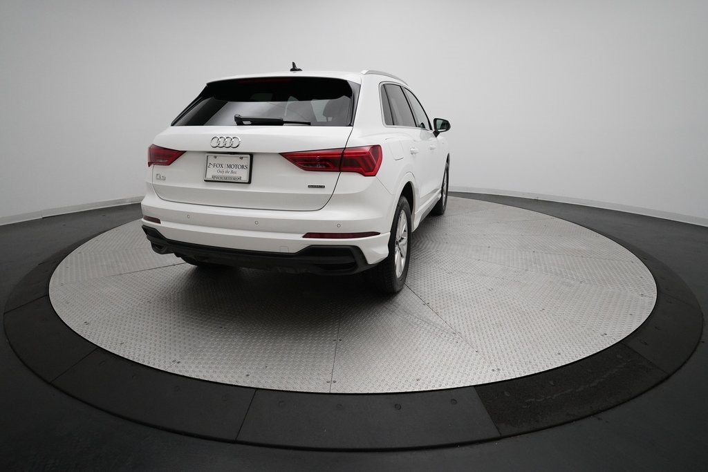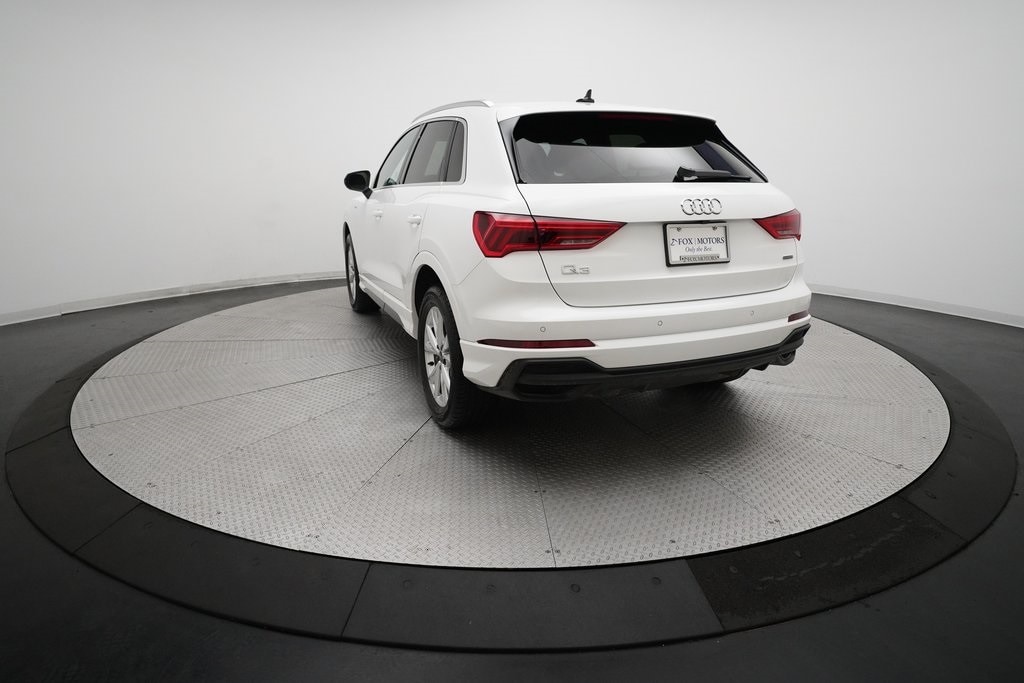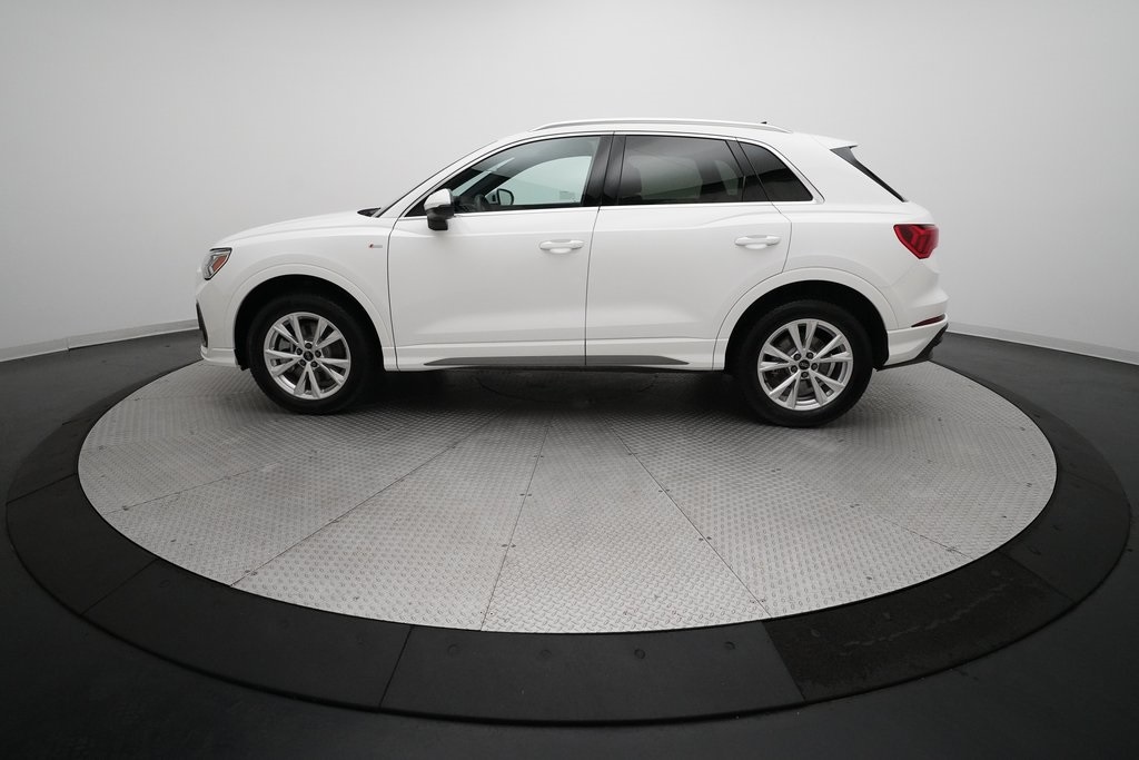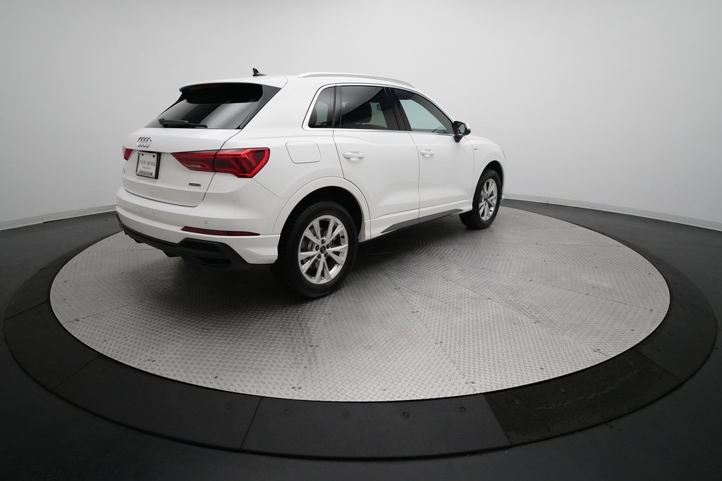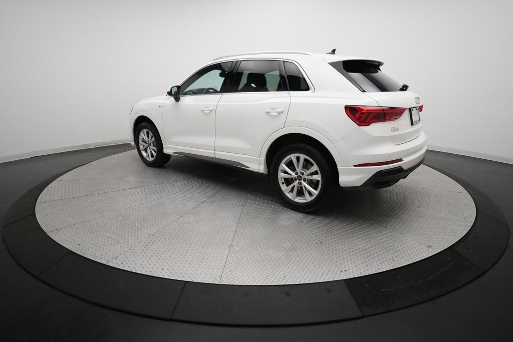 2025 Audi Q3 S Line 45 TFSI Quattro finished in Arkona White over Black Leather. This retired Mobility Unit comes with a clean CarFax Report and is offered for sale with an Audi Certified Pre-Owned Warranty.