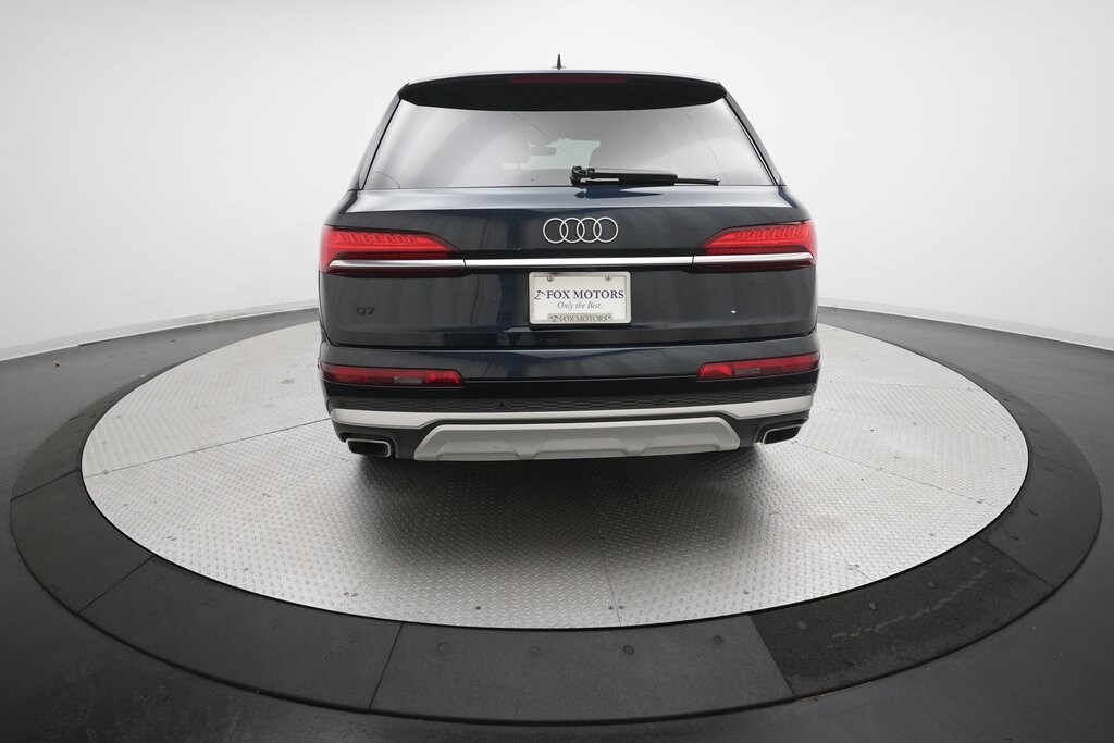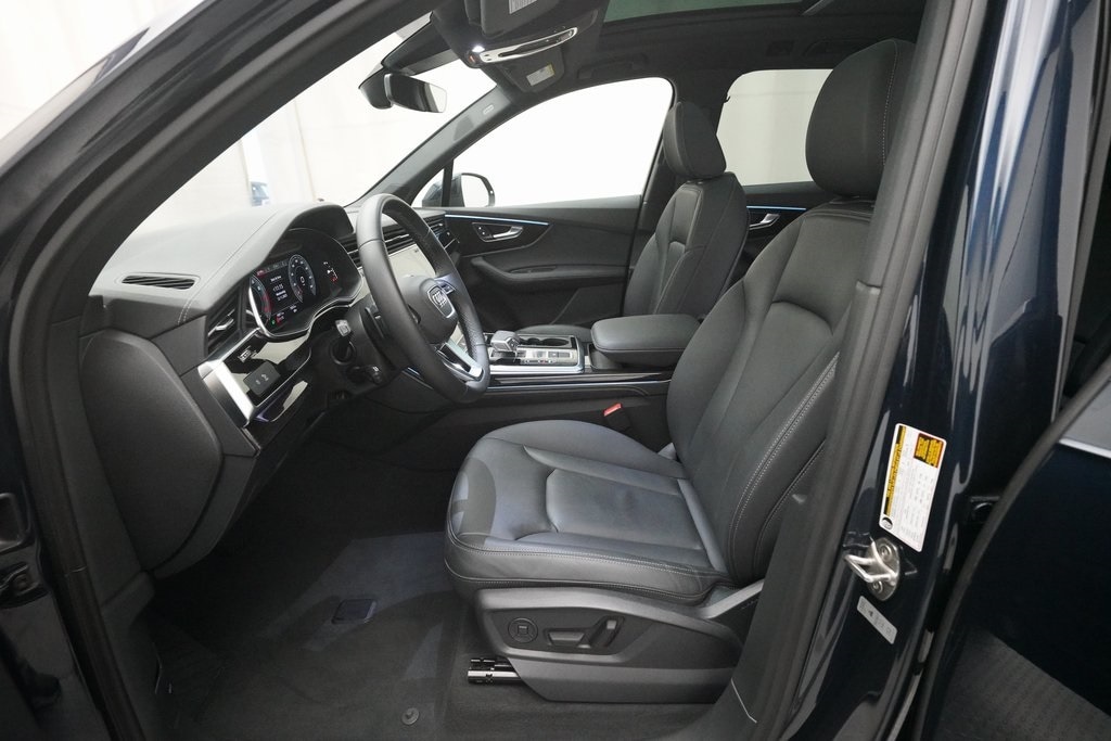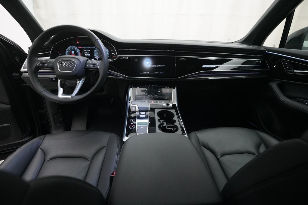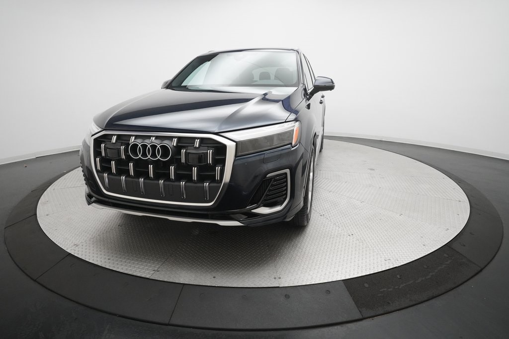 2025 Audi Q7 55 TFSI Finished in Waitomo Blue Metallic over Black Leather. This one-owner Q7 comes with a clean CarFax Report and is proudly offered for sale with an Audi Certified Pre-Owned Warranty.