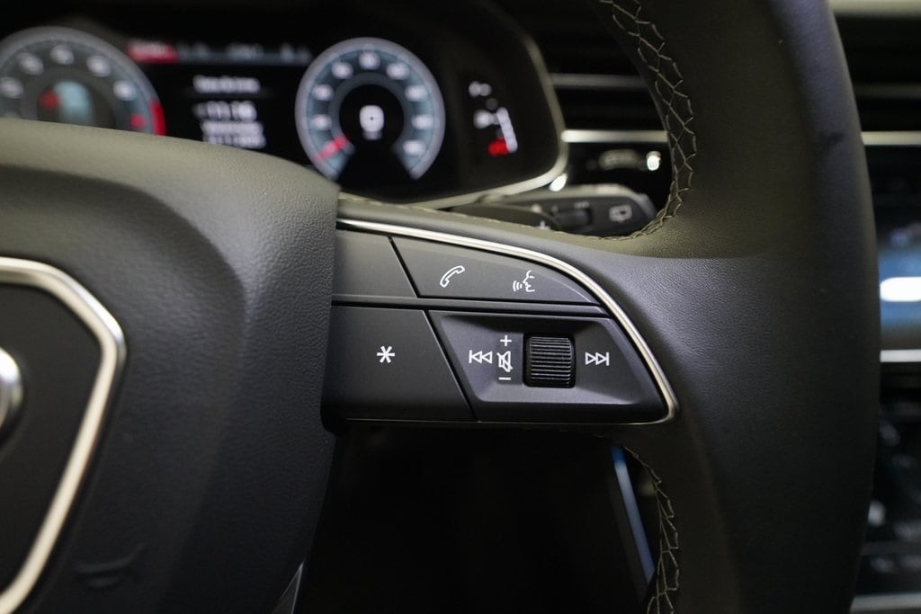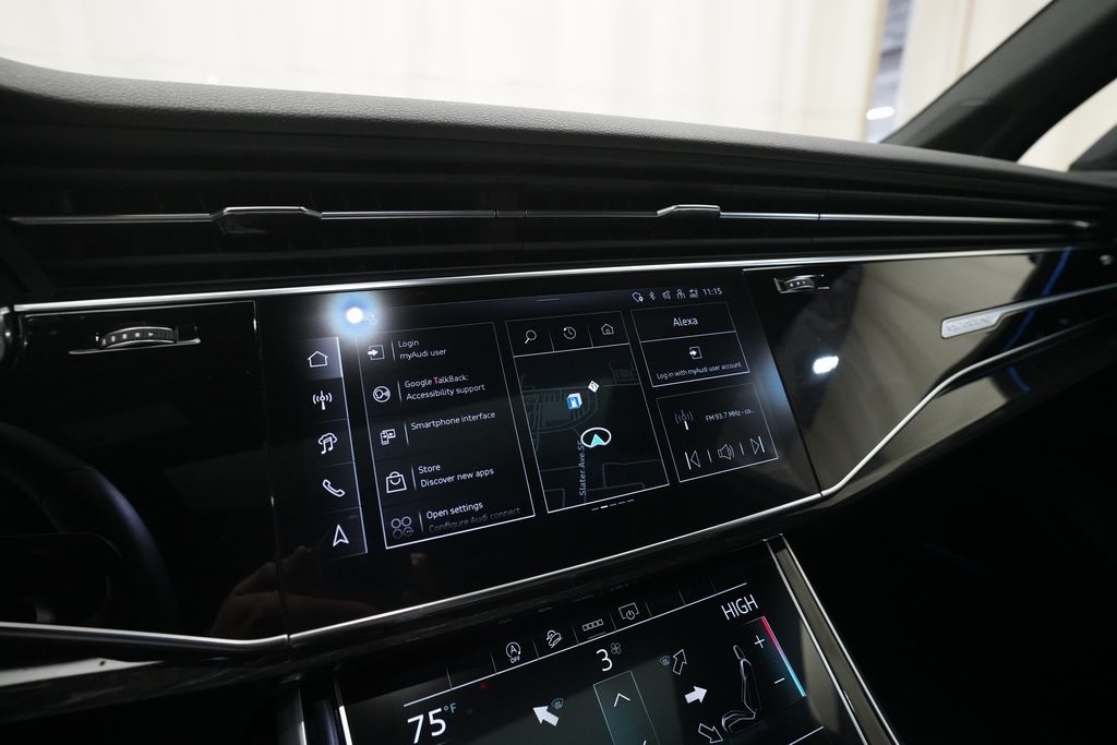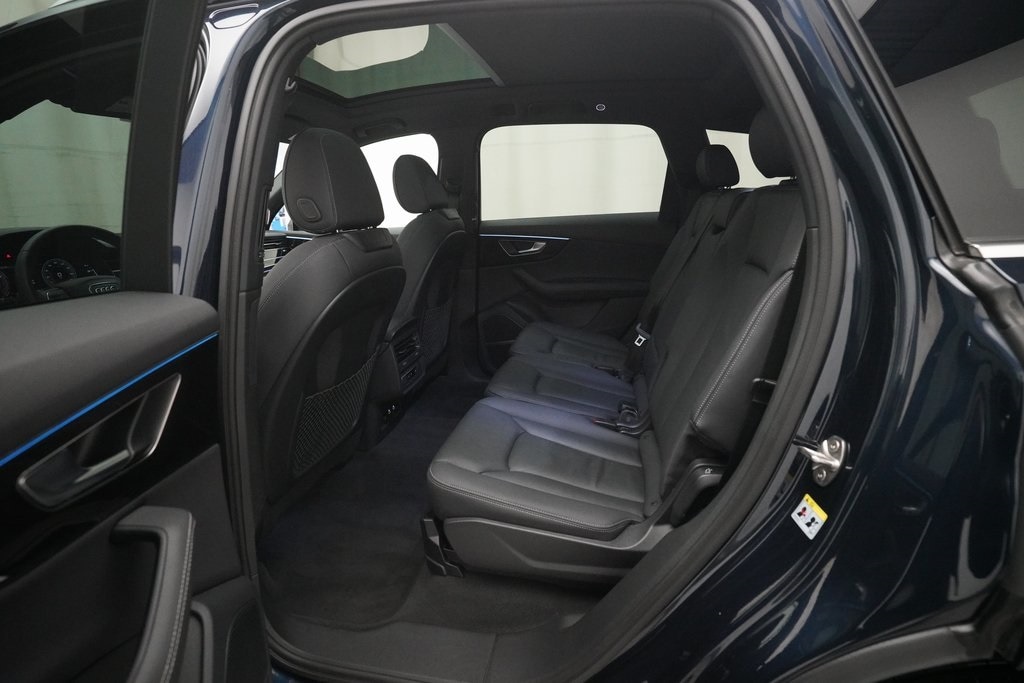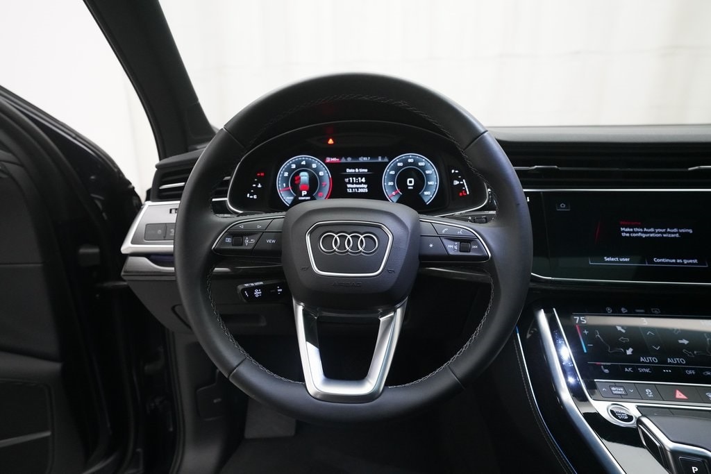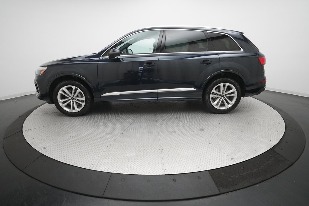 2025 Audi Q7 55 TFSI Finished in Waitomo Blue Metallic over Black Leather. This one-owner Q7 comes with a clean CarFax Report and is proudly offered for sale with an Audi Certified Pre-Owned Warranty.