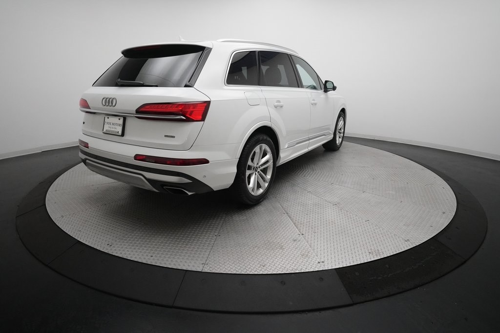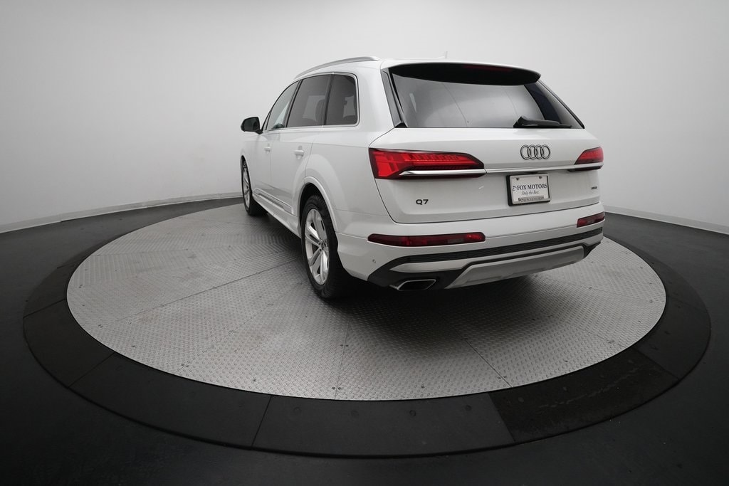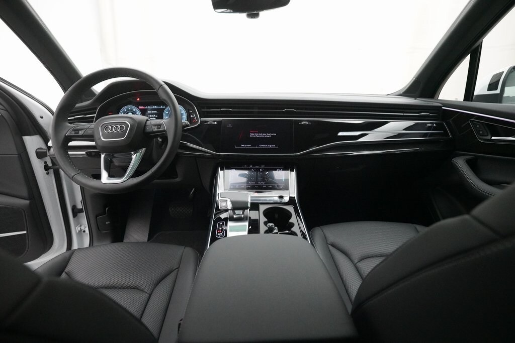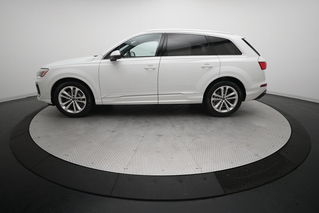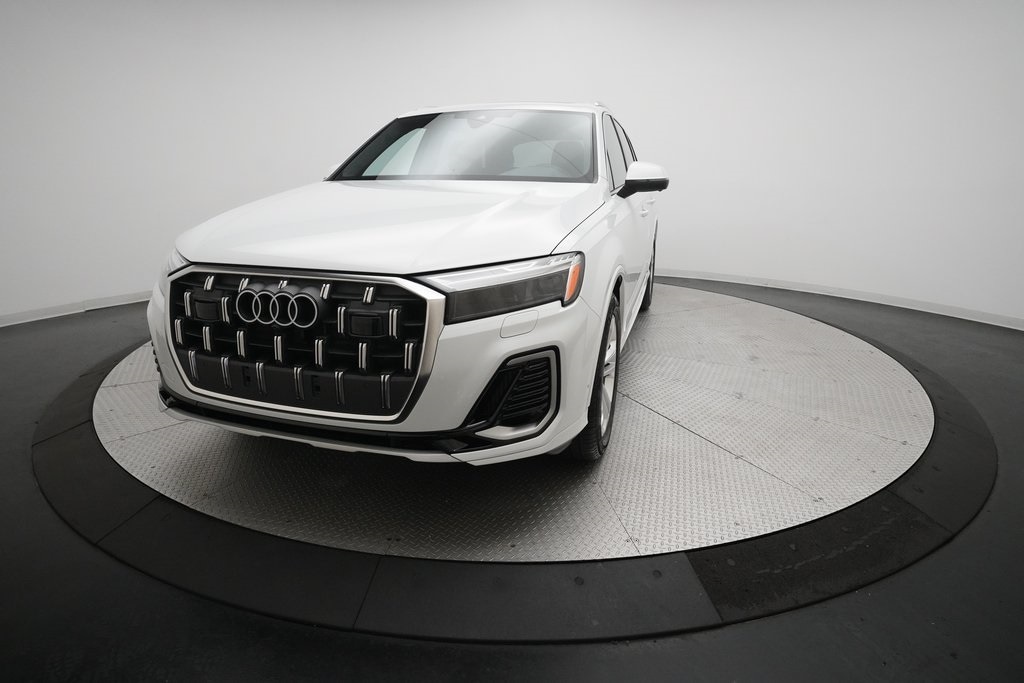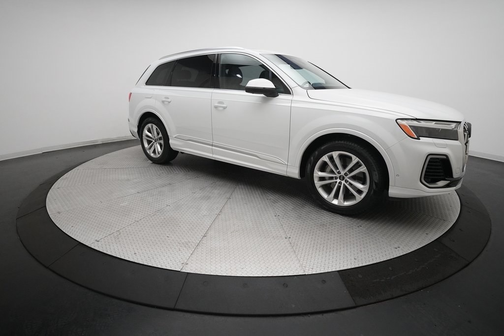 2025 Audi Q7 55 TFSI Quattro finished in Glacier White Metallic over Black Leather. This retired Mobility Unit comes with a clean CarFax Report and is offered for sale with an Audi Certified Pre-Owned Warranty.