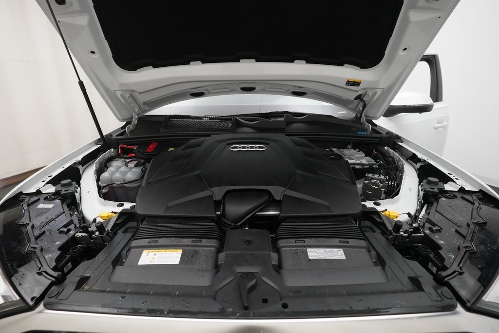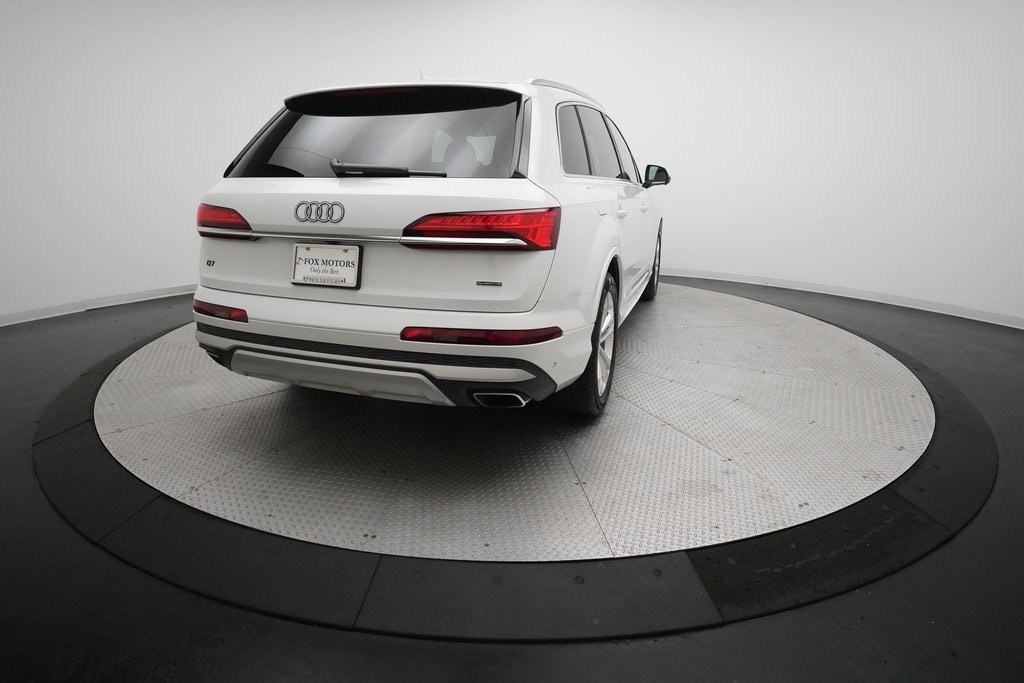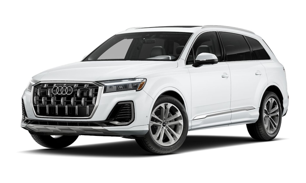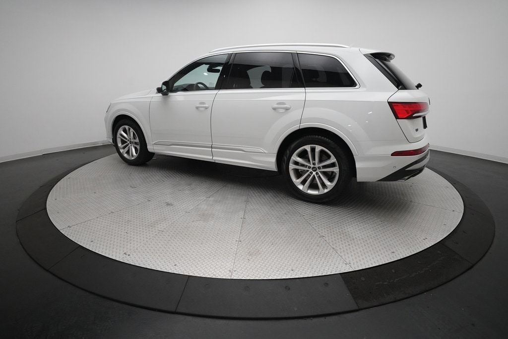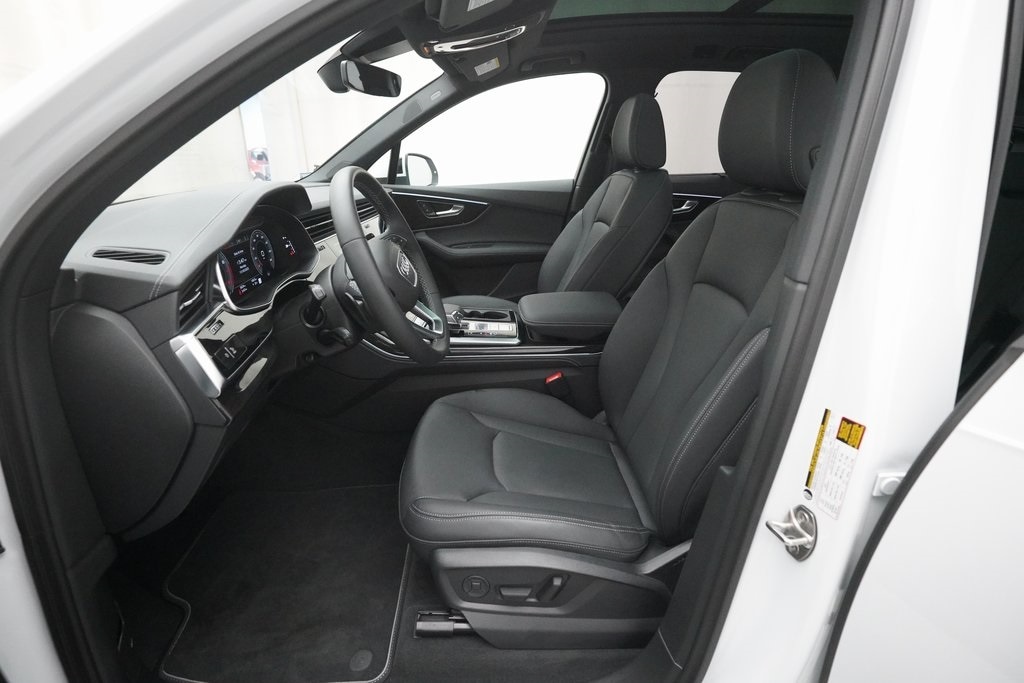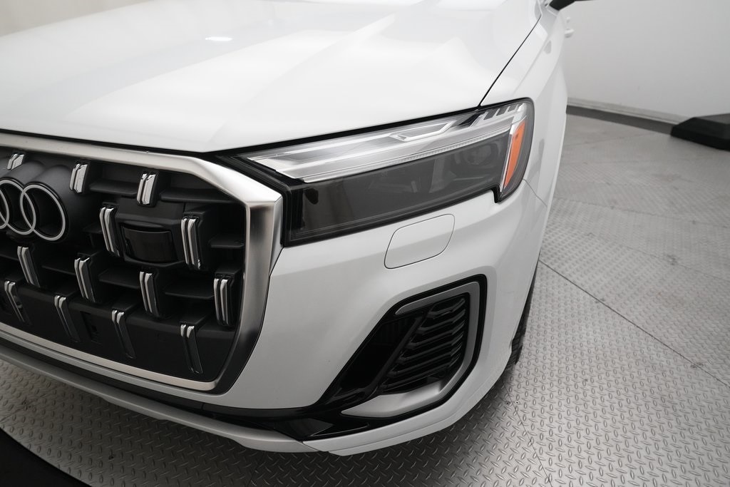 2025 Audi Q7 55 TFSI Quattro finished in Glacier White Metallic over Black Leather. This retired Mobility Unit comes with a clean CarFax Report and is offered for sale with an Audi Certified Pre-Owned Warranty.