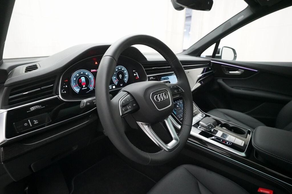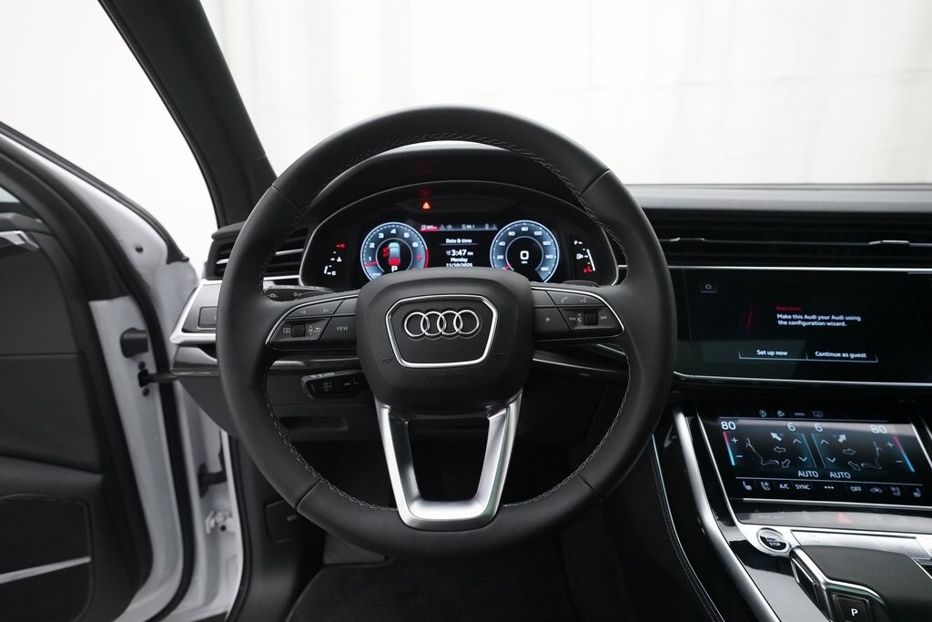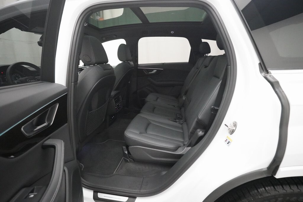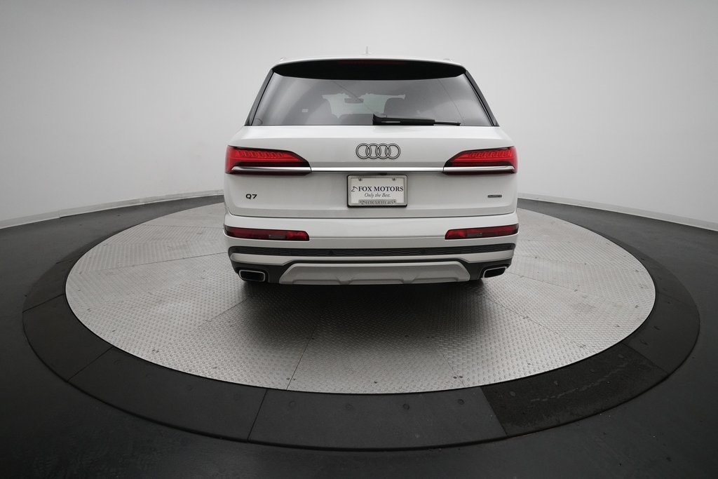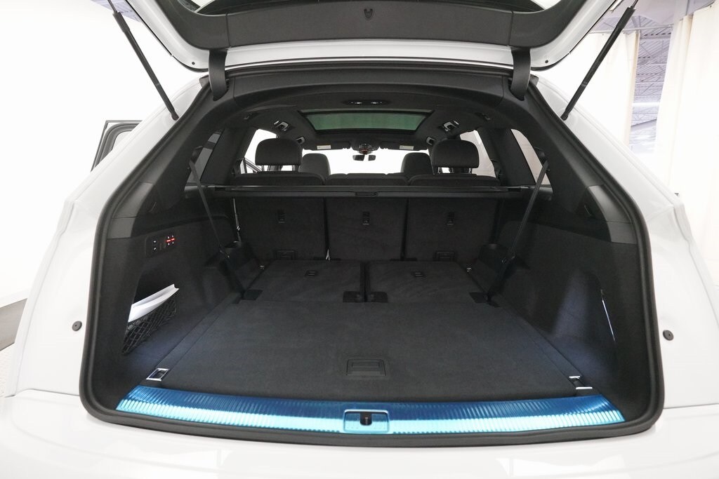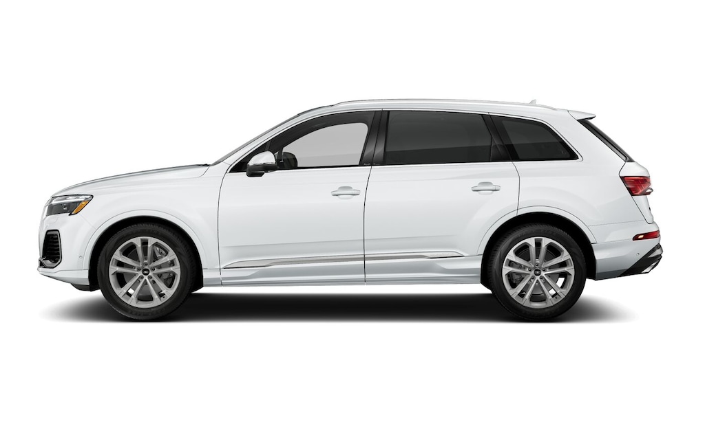 2025 Audi Q7 55 TFSI Quattro finished in Glacier White Metallic over Black Leather. This retired Mobility Unit comes with a clean CarFax Report and is offered for sale with an Audi Certified Pre-Owned Warranty.